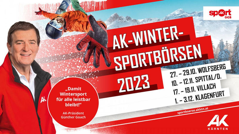 Achtung, Kärntens größter Marktplatz an gebrauchten Sportartikeln öffnet wieder seine Tore, und zwar in Villach von Freitag, 17., bis 19. November. Es können wieder gebrauchte Sportartikel verkauft und kostengünstig Ausrüstung für den kommenden Winter gekauft werden. Geänderter Ablauf: Die Abgabe von Wintersportartikeln erfolgt ausschließlich am Freitag von 10 bis 18 Uhr. Am Samstag können zwischen 10 und 16 Uhr die günstigen Wintersportartikel gekauft werden, eine Abgabe ist an diesem Tag nicht mehr möglich. Parallel zum Sportartikelverkauf erfolgt am Sonntag von 10 bis 16 Uhr die Abholung des Verkaufserlöses und nicht verkaufter Artikel.