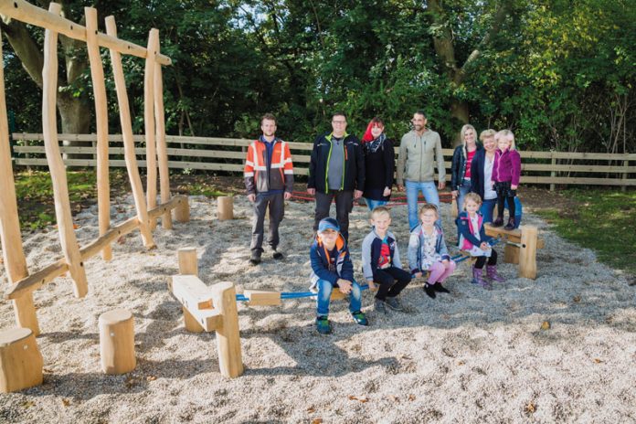 Etliche Spielgeräte, die aus Robinienholz gefertigt sind und vor allem den Gleichgewichtssinn der Kinder fördern sollen, stehen jetzt im Kindergarten St. Magdalen zur Verfügung. Vizebürgermeisterin Irene Hochstetter-Lackner – am Bild mit dem Stadtgrün-Team und Kindern – testete kürzlich mit den Kleinen die neue Anlage. „Auch die Wünsche und Bedürfnisse der St. Magdalener Mädchen und Buben haben wir nach Rücksprache mit der Kindergartenleitung einfließen lassen.“ Die neuen, robusten Spielgeräte zielen vor allem auf das Trainieren des Gleichgewichtssinnes ab.