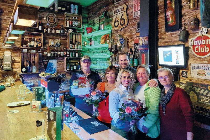 Nach mehrmonatigen Umbauarbeiten eröffnete Eberhard Pirker vor kurzem, angrenzend an das Café „Rondeau“ in Bad Bleiberg, das neue „Blei P(u)b“. Mit viel Liebe zum Detail und durch die Mischung von Bergmannskultur und modernen Elementen entstand ein unvergleichliches Ambiente. Angeboten werden Cocktails, Snacks und vieles mehr. „In dieser so fordernden Zeit freut mich diese Neueröffnung natürlich ganz besonders“, betonte Bürgermeister Christian Hecher. Von links Eberhard Pirker, Katrin Werner, Hecher, Nicole Pirker, Roswitha Michenthaler und Gabriele Grabmann.