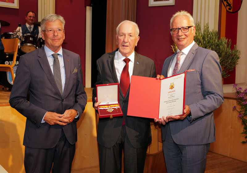 Im Rahmen einer Festsitzung des Weißensteiner Gemeinderates wurde kürzlich Altbürgermeiser Hermann Moser durch LH Peter Kaiser und Landtagspräsident Reinhart Rohr das Goldene Ehrenzeichen des Landes Kärnten verliehen. Hermann Moser war in Weißenstein mit 24 Bürgermeisterjahren längst dienender Gemeindechef. Als Meisterleistung in der langen Liste der Leistungen von Hermann Moser bezeichnete Kaiser beispielsweise die Neu-Nummerierung der Häuser in der gesamten Gemeinde. Ganz besonders aber, dass Moser den Begriff Enkelverantwortung gelebt habe. „Dir war klar, dass man mit Produktionsweisen, die heute modern sind, in 30 Jahren nicht mehr reüssieren wird. Du hast gewusst, dass Deine Gemeinde und damit auch eine starke Wirtschaft sich weiterentwickeln werden, und dadurch die Verantwortung zu übernehmen ist, diese Gesellschaft und dieses Umfeld so zu gestalten, dass sie enkeltauglich werden.“ So habe ÖBB-Chef Andreas Matthä nach der Errichtung der fünften Eisenbahnkreuzung in der Gemeinde Weißenstein augenzwinkernd gesagt, dass das gesamte – für Kärnten vorgesehene – Geld in Weißenstein verwendet worden sei. Alt-Bürgermeister Hermann Moser und Amtsleiter Ernst Glanzer wurden von Bürgermeister Harald Haberle mit dem Ehrenring ausgezeichnet und zu Ehrenbürgern ernannt. Am Bild der Geehrte, flankiert von LH Kaiser und Landtagspräsident Rohr.