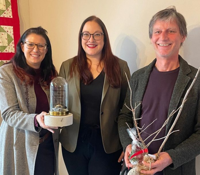 Erhalt der Biodiversität, nachhaltige Stadtplanung, Baumschutz und noch vieles mehr: Mit der Verleihung der „Goldenen Unke“ wurde das Engagement Villachs für Natur- und Umweltschutz einmal mehr gewürdigt. Die „Unke“ ist ein Preis für angewandten Umweltschutz, den das Land Kärnten mit der Fachhochschule vergibt. „Im Rahmen der Stadtphilosophie #grenzenlos grün zeigt Villach vor, wie Biodiversität durch nachhaltige Stadtentwicklung gefördert werden kann“, erklärte LR Sara Schaar (links), am Bild mit Vizebürgermeisterin Sarah Katholnig und Stadtgrün-Chef Wolfgang Faller.