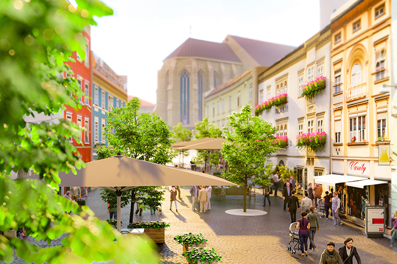 Der „Wanderbaum-Allee“ in Holztrögen folgt jetzt auf dem Villacher Hauptplatz die „Grüne Achse“. Die neuen Bäume werden nach dem „Schwammstadt“-Prinzip eingesetzt. Sie erhalten einen aufwendigen Unterbau, der ihre Lebensdauer verlängert und bei Starkregen Überschwemmungen verhindern kann. Baustart für die drei Etappen war Ende Februar, zunächst beginnt die KELAG mit einer Fernwärmeaktion. Parallel dazu stellt die Stadt auf Höhe Kreisapotheke den ersten von zehn „Schwammstadt“-Bäumen auf.