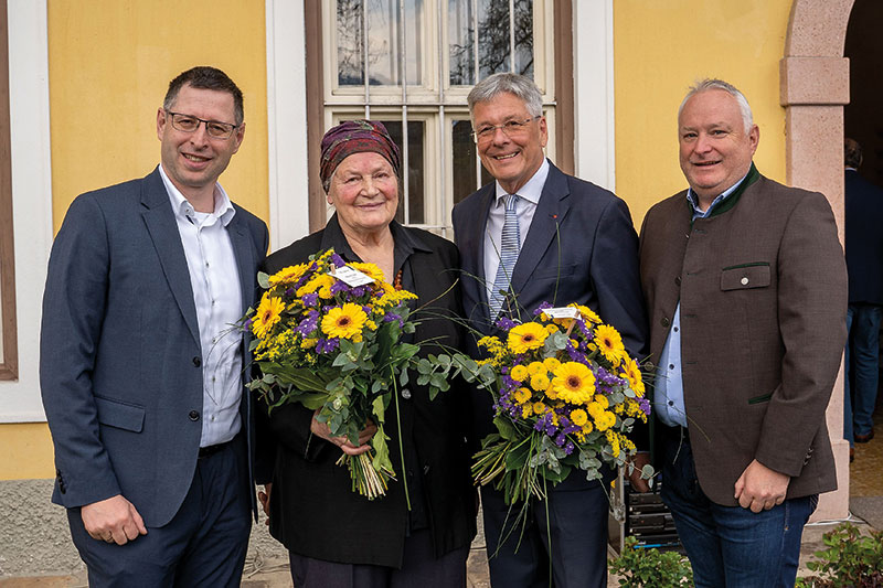 Sein 25-Jahre-Jubiläum feiert das Museum des Nötscher Kreises mit der Ausstellung „Impressionen“. Gezeigt werden teilweise noch nie ausgestellte Werke. Die Ausstellung läuft bis 29. Oktober. Das Museum ist im Geburtshaus Franz Wiegeles untergebracht (Kuratorin Sigrid Diwald, Geschäftsführerin Birgit Kassel). Das Haus ist als Museum eine Besonderheit, da sich dort auch die Bäckerei und die Mühle Wiegele befindet. Am Bild von links Bürgermeister Alfred Altersberger, Hermine Wiegele, LH Peter Kaiser und Michael Rohr.