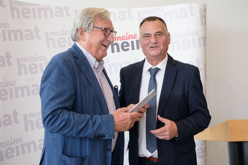 Dank und Anerkennung des Landes. Acht Funktionsperioden wirkte Helmut Manzenreiter als Vorstandsvorsitzender der Wohnbaugenossenschaft „meine Heimat“. Der frühere Villacher Bürgermeister – ein paar Tage zuvor 78 Jahre alt geworden – wurde im Congress Center im Zuge eines Sommerfestes feierlich verabschiedet. Landeshauptmann Peter Kaiser gratulierte und dankte Manzenreiter ebenfalls und überreichte ihm gemeinsam mit Landesrätin Beate Prettner und Landtagspräsident Reinhart Rohr eine Dank- und Anerkennungsurkunde des Landes.