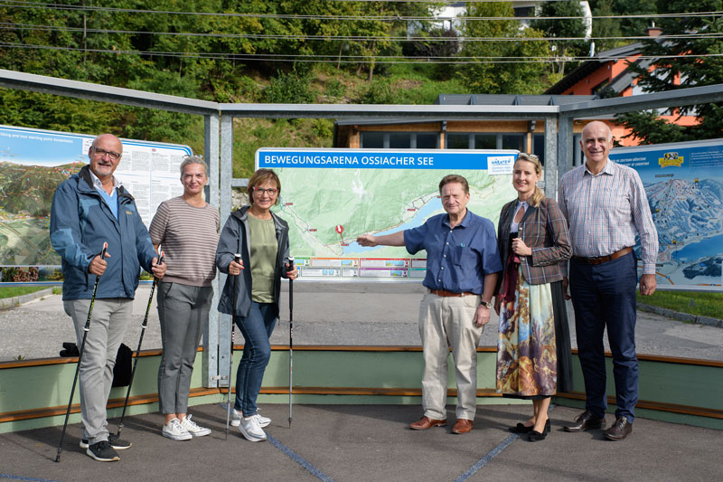 Der Tourismusverband Gerlitzen Alpe – Ossiacher See hat in Kooperation mit der Region Villach Tourismus in den letzten Monaten an dem Projekt „Bewegungsarena Ossiacher See“ und der Errichtung des Wander- und Tourenstartplatzes in Annenheim gearbeitet. Die beiden Projekte, die bereits im Juli fertiggestellt worden waren, wurden kürzlich offiziell eröffnet. Basierend auf dem Grundgedanken, die Orte am Nordufer des Ossiacher Sees (von Einöde bis Tiffen) miteinander zu verbinden, wurde die Idee der „Bewegungsarena“ geboren. Genutzt wurde das bestehende Wegenetz, um Runden mit besonderen Ausblicken auf den See und die Umgebung auszuarbeiten. Versehen mit Übersichtstafeln an sechs Startpunkten, einem Farb-Leitsystem und Markierungstafeln entlang der Strecken, kann die herrliche Landschaft am Nordufer des Ossiacher Sees zu Fuß entdeckt und genossen werden. Die Gesamtrecke umfasst auf rund 60 Kilometer. Die Konzeption besorgte in bewährter Form die Firma „runnersfun“. Einer der sechs Startpunkte der Bewegungsarena befindet sich beim Wander- und Touren-Startplatz in Annenheim. Der neu errichtete Wander- und Touren-Startplatz in Annenheim bietet sich aber auch als Ausgangspunkt für zahlreiche andere Wandertouren an. Zur Orientierung stehen neue Panoramatafeln zur Verfügung. Sie geben einen guten Überblick über den Erlebnisraum Gerlitzen Alpe–Ossiacher See.