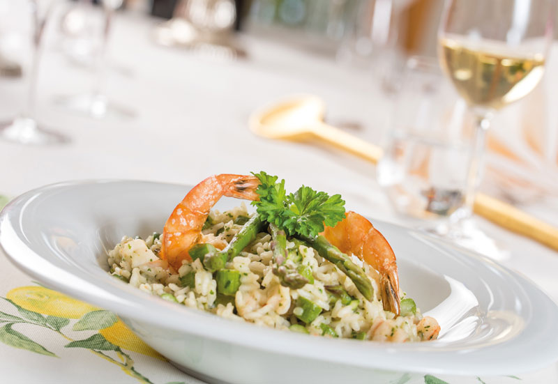 Eine Delikatesse und köstliches Gericht ist das Risotto mit grünem Spargel und Garnelen. Da kommt der Frühling und das Meer auf den Teller!