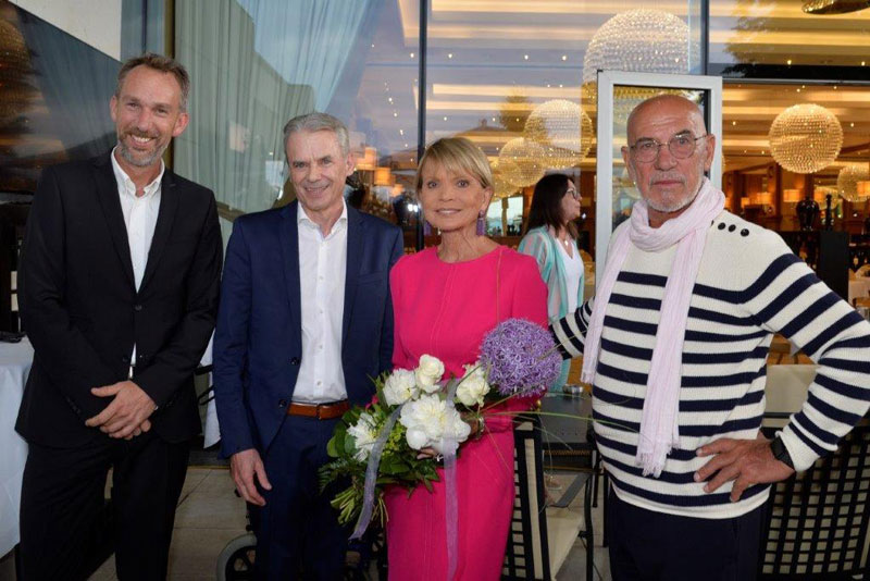Als symbolische Anerkennung ihrer filmischen Leistungen und ihrer Liebe zur Region wurde Uschi Glas vor kurzem zur Wörthersee-Botschafterin ernannt. „Damit reihen wir uns in die lange Liste der Auszeichnungen, mit denen die Schauspielerin im Laufe ihrer Karriere geehrt wurde“, sagte Veldens Bürgermeister Vouk. Mindestens so beeindruckend wie die schauspielerische Karriere ist auch ihr soziales Engagement. Glas ist auch ultimativ mit der Kultserie „Ein Schloss am Wörthersee“ verbunden. Ihr Handabdruck findet sich seit 2014 auf der Starmeile entlang des Corsos vor dem Casino. Von links Veldens Tourismuschef Bernhard Pichler-Koban, Vouk, Uschi Glas und Regisseur Otto Retzer.