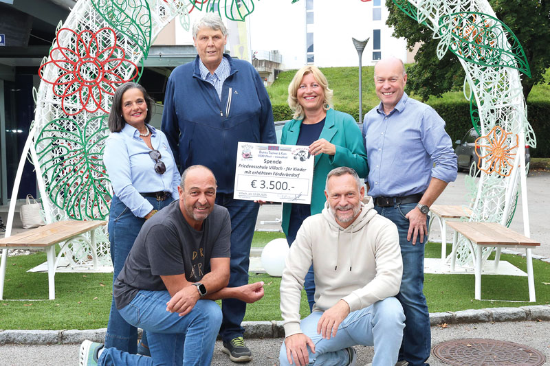 Stark frequentierte „Starkstrombar“ der Firma Elektro Tischner & Klein auch beim 80. Villacher Kirchtag: Im Zuge des 7. Charity Ausschanks kellnerte viel Prominenz, wodurch 14.000 Euro eingespielt werden konnten. Initiatoren: EC Kellerberg und Beeftisch Villach. Gesammelt wurde für die Sonderschule Villach, Vier Jahreszeiten, die kleine Sophie und Kiana. Prominente Bediener waren auch Katharina Truppe, Nadine Fest, Martin Koch, Marco Ventre und Udo Wenders. Unten eine Szene von der Spendenübergabe mit den ETK-Chefs Rudolf Tischner und Andreas Klein.