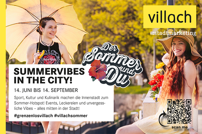 Villach ist für den Sommer gerüstet! Passend dazu gibt es ab heuer einen neuen Slogan: „Villach, der Sommer und DU!“ Für Stadtmarketing-Chef Pierre Bechler beschreibt er „die Lebensfreude und Begeisterung der Villacherinnen und Villacher optimal“.