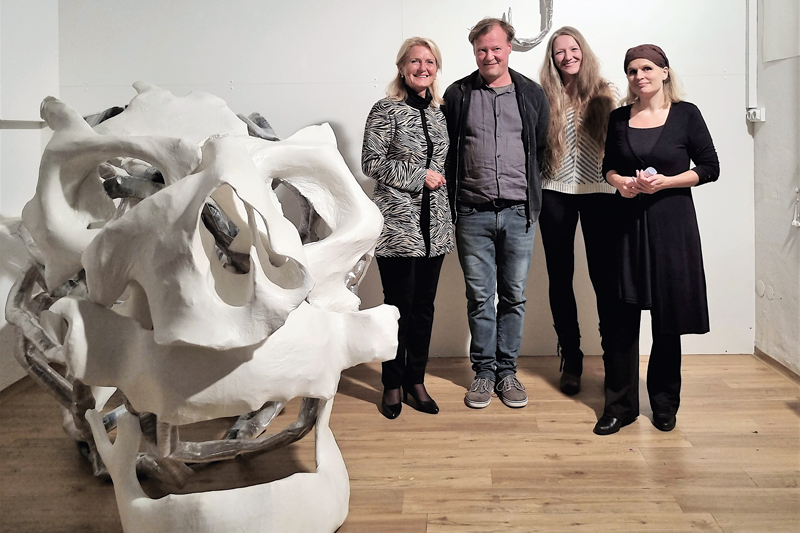 Vermeintlich tonnenschwere Papierarbeiten und federleicht anmutender Stein in Form von Marmorskulpturen, Bildern und Objekten von Romana Egartner und Niclas Anatol waren am Veldener Hausbahnsteig unter der Vorgabe „Zwischenstopp“ zu sehen. Auch die Art und Weise, wie beide den Kunstbahnhof Wörthersee mit ihrer überaus schlüssig gestalteten Rauminstallation bespielten, begeisterte Publikum und Kuratorinnenherz. Am Bild von links Kulturausschussobfrau GR Margit Heissenberger, Niclas Anatol, Romana Egartner und Kuratorin Barbara Ambrusch-Rapp.